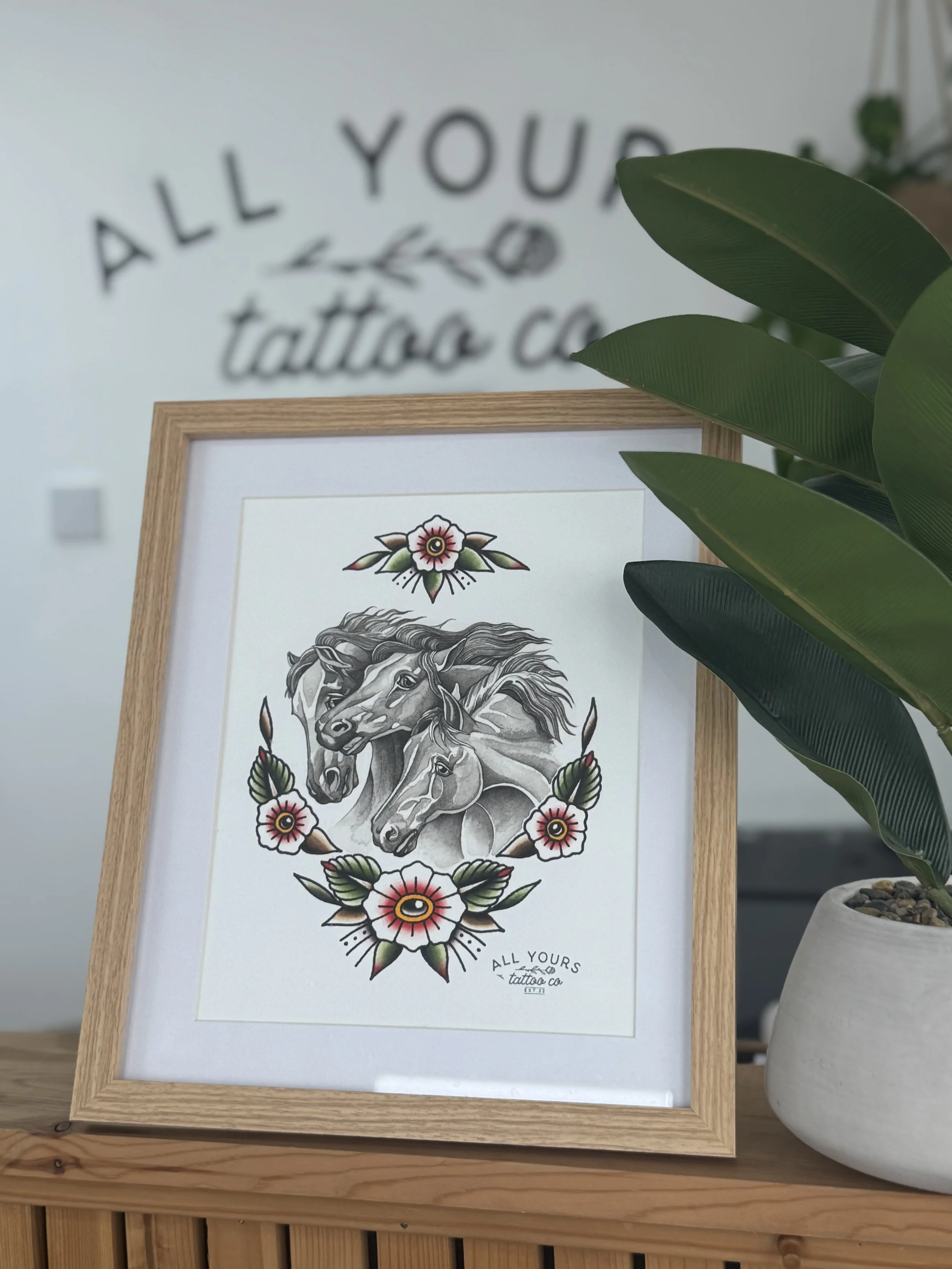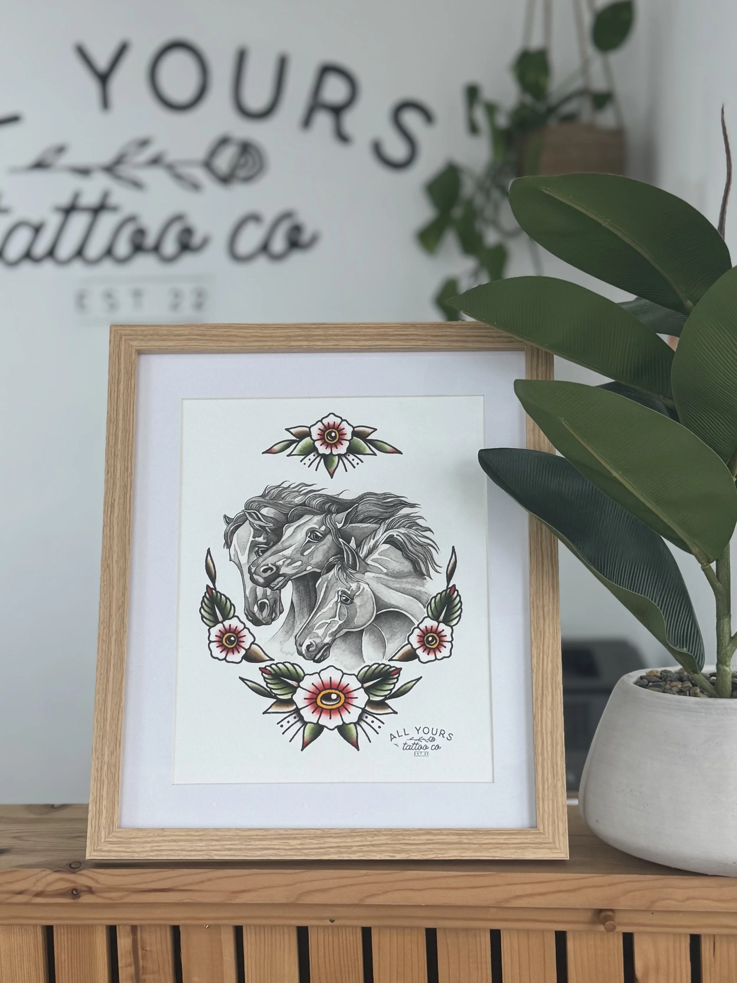 Shop A4 Pharaohs Horses print £20.00 BLACK TOTE BAG £8.00 Gift Box 1 £70.00 Gift Box 2 £60.00 BLACK COWGIRL T-SHIRT £15.00 All Yours Tattoo Co x Moxi Candle £18.00 WHITE T-SHIRT £15.00 TOTE BAG £6.00 Voucher £10.00